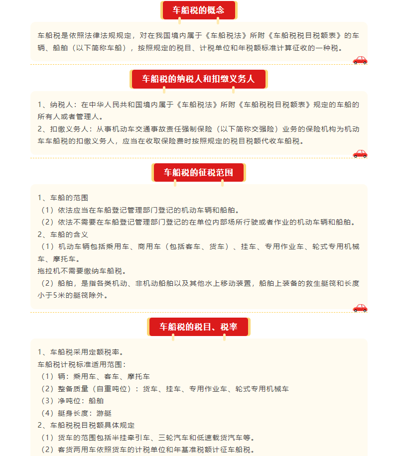 【萌新课堂】知识点123:车船税的概念、纳税人和扣缴义务人、征税范围、税目、税率